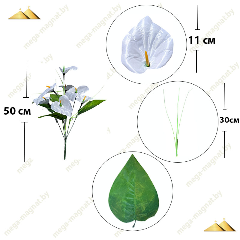Каллы выполнены с вниманием к деталям: аккуратная форма, реалистичные лепестки и плавные линии делают букет элегантным и утончённым. Гибкие и прочные стебли позволяют легко формировать композицию, придавая нужный объём и направление.