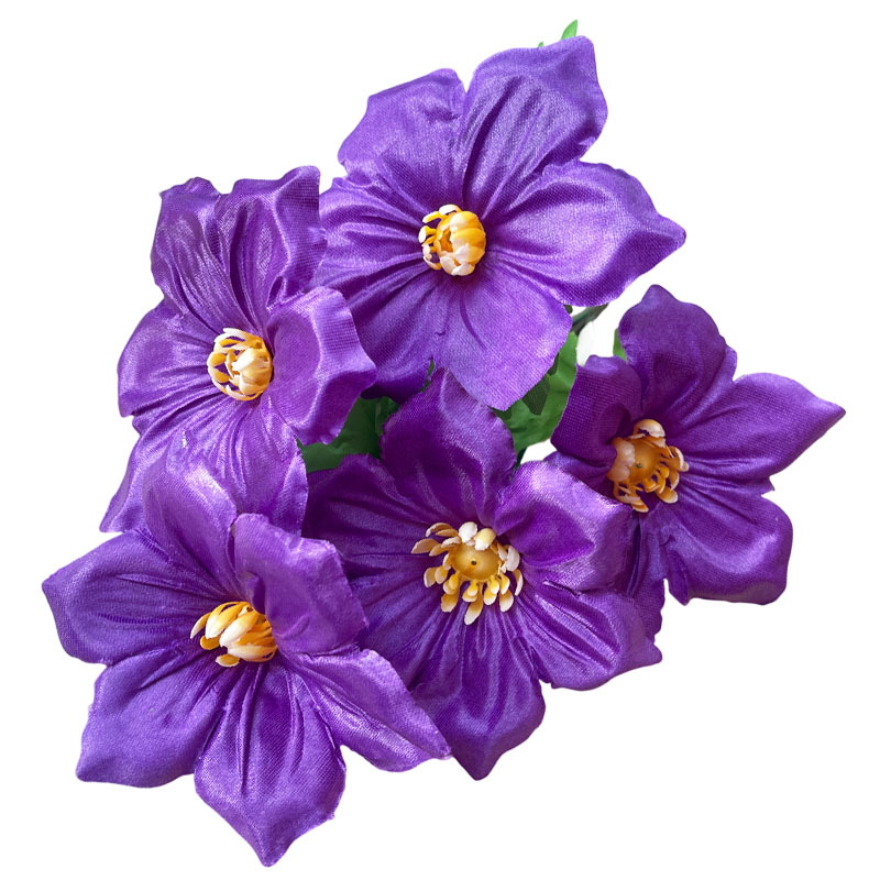 Клематис — лёгкость и красота в каждом лепестке, вдохновляющая на новые свершения. Его аккуратные лепестки и реалистичная текстура создают ощущение живого цветка, придавая композициям лёгкость и воздушность. Прочный и гибкий стебель обеспечивает удобство при формировании букетов любой формы и объёма.