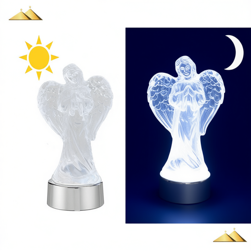 Элегантный декоративный вкладыш с фигуркой ангела — это светлый символ заботы, покоя и надежды. Ангел выполнен из прозрачного материала, с тонкой проработкой деталей: нежные черты лица, крылья, складки одежды — всё выглядит как живое. Фигурка установлена на устойчивой подставке, внутри которой спрятаны LED CW - светодиод. При включении они подсвечивают ангела синим светом, создавая мягкое и завораживающее сияние, Светящийся ангел на подставке — это не просто украшение, а тёплое послание и символ душевного света, который всегда рядом.