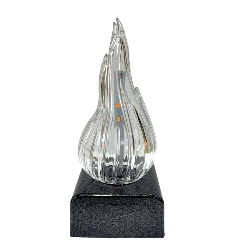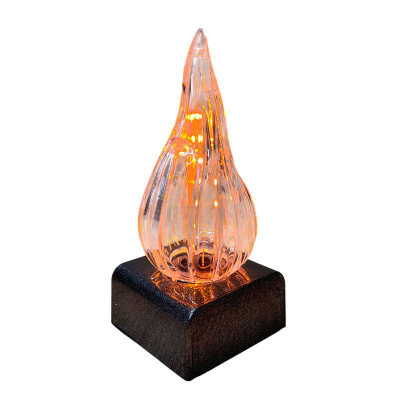 Эффектная LED-свеча с оригинальным дизайном, создающим реалистичную иллюзию живого огня. Установлена на чёрной устойчивой подставке, которая подчёркивает яркость и прозрачность огня. Высокое прозрачное пламя выполнено в виде изогнутого язычка пламени, внутри которого размещены многочисленные светодиоды. Они переливаются, играют и мерцают, создавая впечатляющий эффект движения и живого свечения — как будто пламя действительно горит и колышется на ветру.