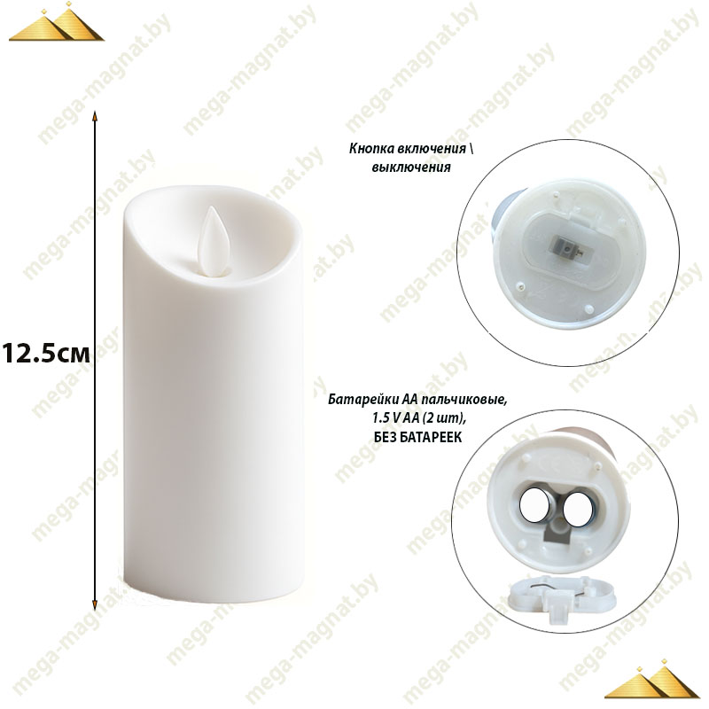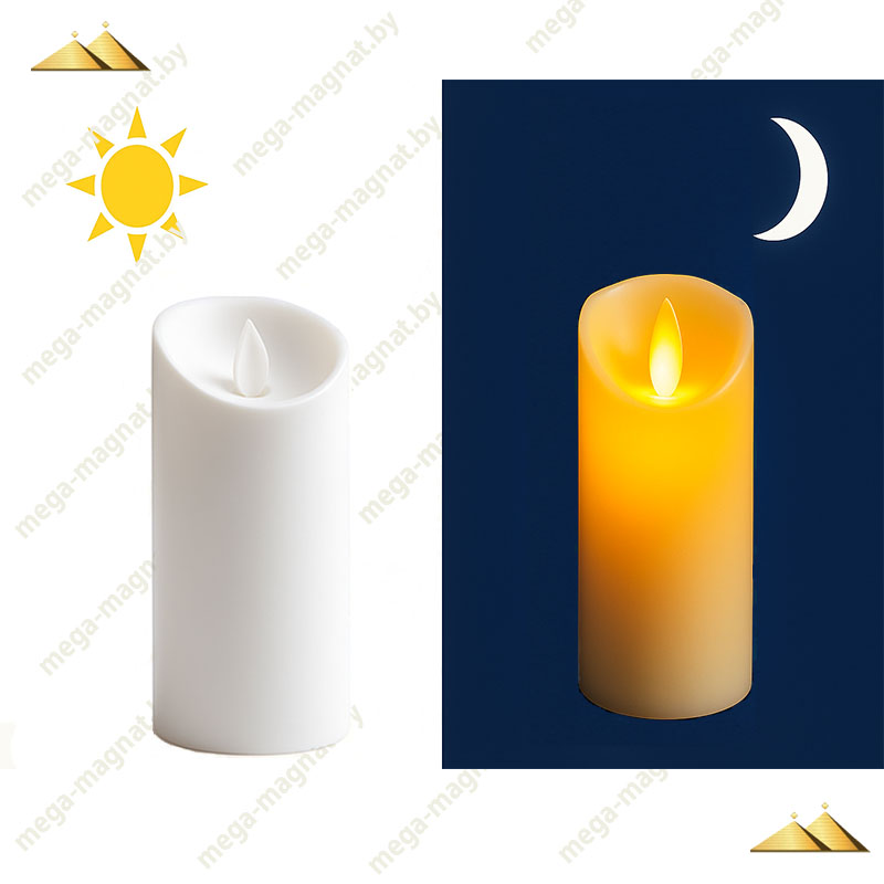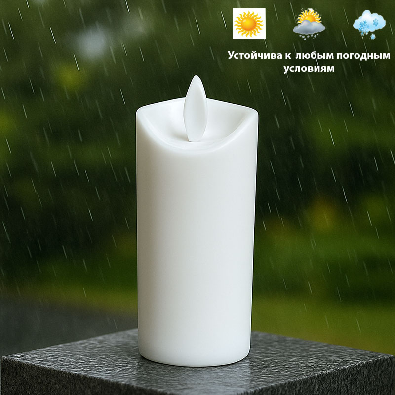 Классическая LED-свеча с реалистичным эффектом живого пламени. Светлый корпус выполнен в форме свечи — выглядит солидно и натурально. Наверху — аккуратное пламя, которое мягко светится, создавая уютную атмосферу. Неровные края, как будто свеча уже горит и плавится. Такая форма придаёт изделию правдоподобный и декоративный вид. Пламя небольшое по высоте, но за счёт LED-технологии свет равномерный и спокойный, без мерцания. Эта LED-свеча придаст обстановке тепло и спокойствие — даже без огня.