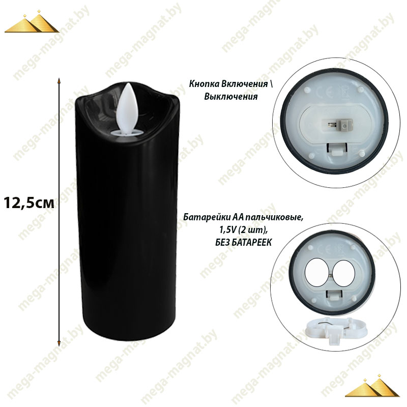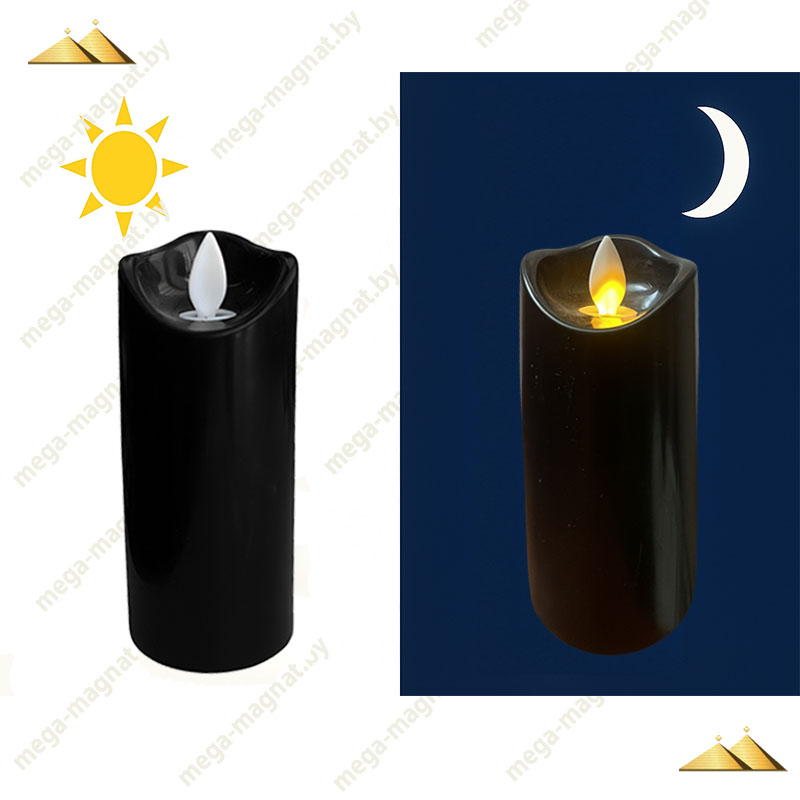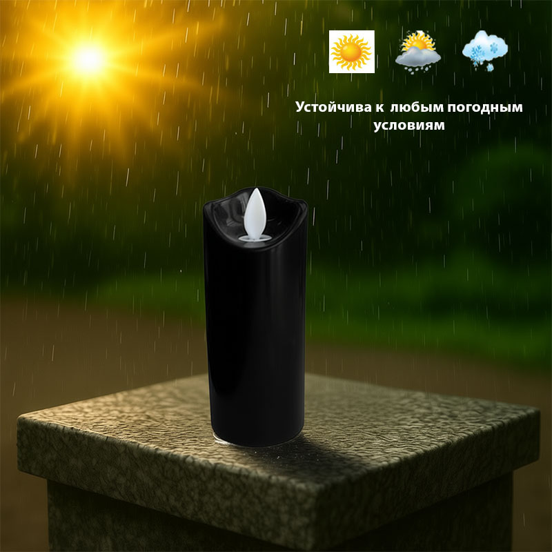Эффектная LED-свеча с реалистичным дизайном и теплым свечением. Корпус черного цвета, с верхними неровными краями, как будто свеча уже горит и плавится. Такая форма придаёт изделию правдоподобный и декоративный вид. Сверху — небольшое LED-пламя, создающее мягкое и уютное свечение, имитируя настоящее горение, но абсолютно безопасно. Стильная и реалистичная, эта свеча станет ярким акцентом в любом пространстве — с теплом, но без огня.
