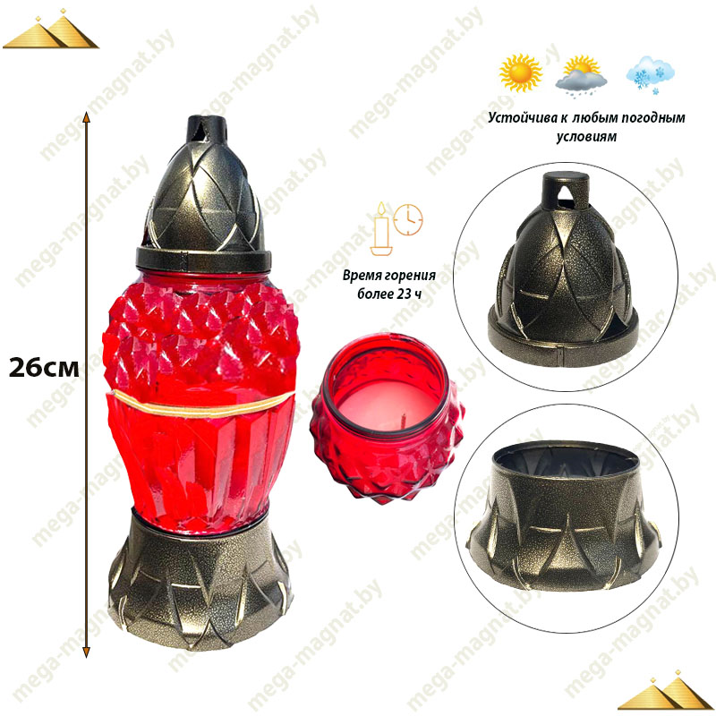 ✅ Сверху пластиковая крышка, защищающая пламя от ветра и осадков.