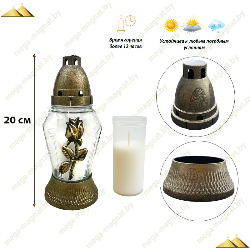 ✅ Лампада изготовлена из прочного стекла, которое выдерживает перепады температур, ветер, дождь и прямые солнечные лучи.