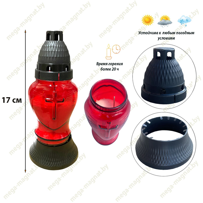 Лампада Сердце 170 — символ вечной любви и тёплой памяти. Выполнена в ярком красном цвете, который олицетворяет любовь, преданность и светлую память. На стеклянной части лампады посередине выбит крест, который придаёт образу особую трогательность.