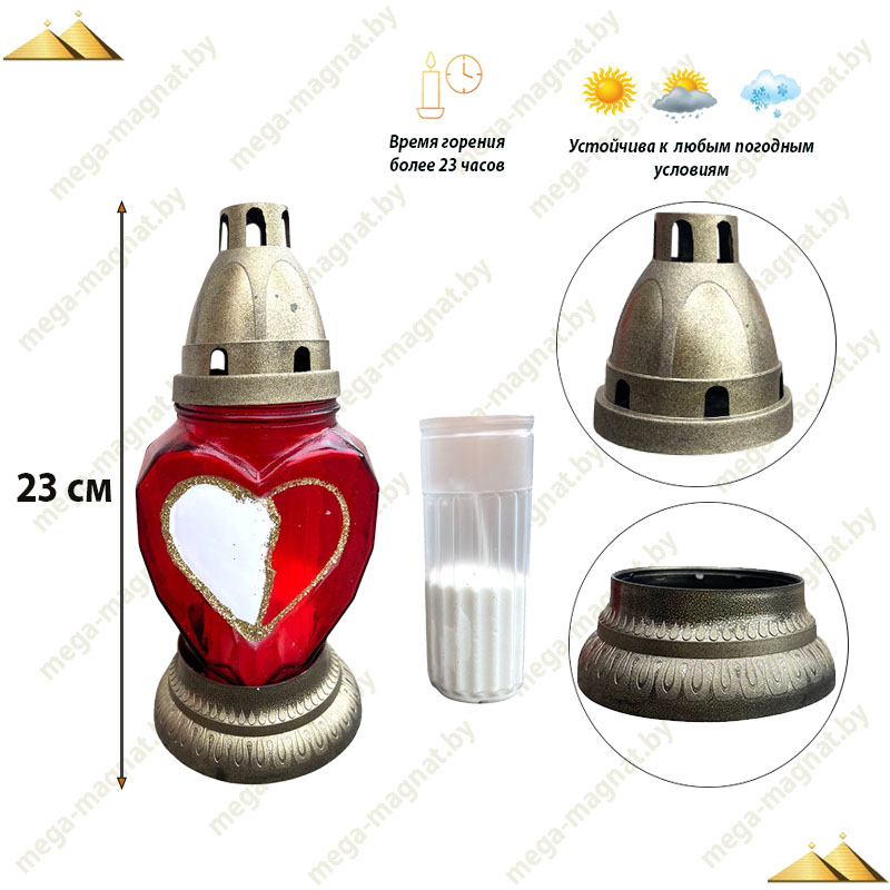 Сердце — универсальный символ любви, душевной связи и вечной памяти, делая эту лампаду особенно душевной и значимой.