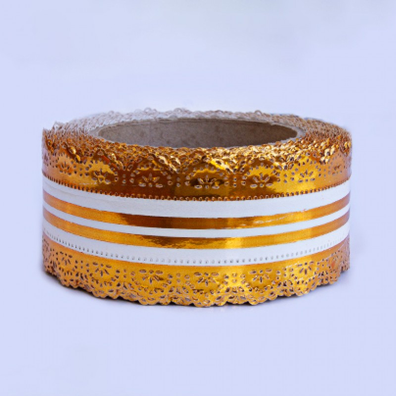 Дизайн: лента насыщенного золотого цвета, с ажурными краями в виде корон, дополнена белой вставкой по центру, которая добавляет контраста и выразительности.