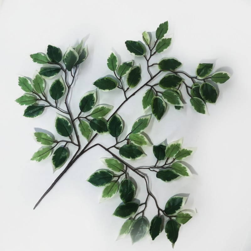 Эта реалистичная декоративная ветка фикуса длиной 56 см украшена 60 очень мелкими листочками, которые создают эффект пышного и живого зелёного куста. Листья чередуются между светло-зелёными и тёмно-зелёными оттенками, что придаёт ветке естественную глубину и динамику. Каждый листочек тщательно прорисован с мелкими прожилками и натуральной текстурой. Гибкий ствол позволяет легко сгибать и фиксировать ветку в нужном положении, что делает её удобной для создания различных флористических и интерьерных композиций.