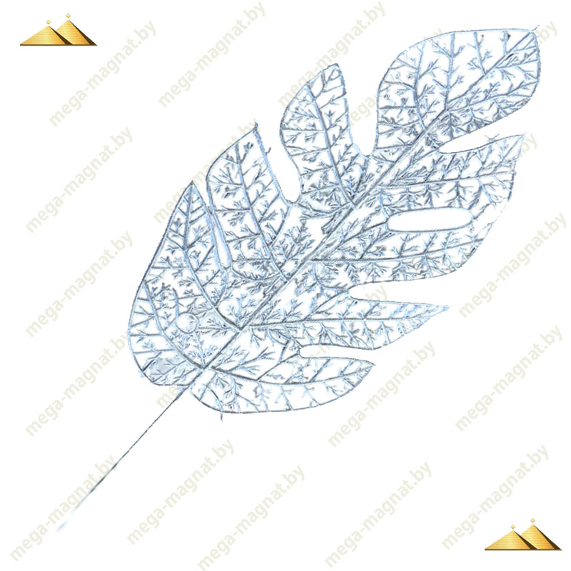 ЗК 074 Ветка ритуальная Л 94 (серебро) Монстеры пластик, 39 см