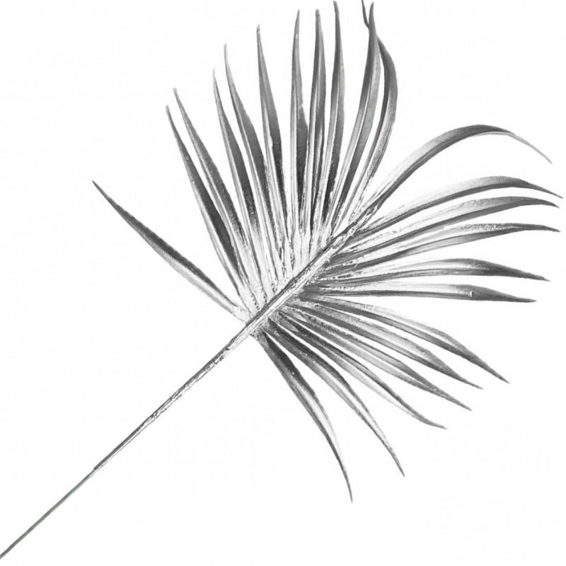 Эта элегантная ветка пальмы длиной 35 см выполнена из пластика и покрыта стильным серебристым оттенком, придающим ей современный и изящный вид. Лист ветки — объёмный с характерными удлинёнными разрезами, типичными для пальмовых листьев, что создаёт натуральный и воздушный образ. Гибкий стебель позволяет легко сгибать ветку и фиксировать её в нужной форме, открывая широкие возможности для использования в композициях.