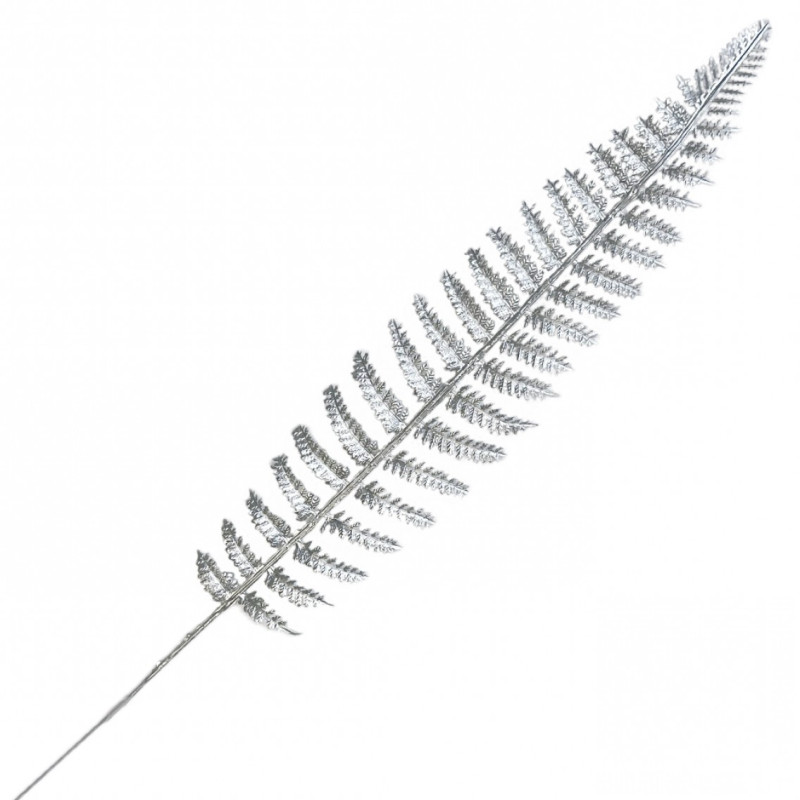 Эта элегантная ветка папоротника длиной 46 см выполнена из пластика и покрыта серебристым оттенком, который придаёт ей роскошный вид. По обеим сторонам гибкого стебля расположены маленькие листочки молодого папоротника, создающие лёгкий и воздушный образ. Удлинённая форма ветки подчёркивает естественную изящность папоротника, а серебристое покрытие добавляет блеск любому декору. Гибкий стебель позволяет легко придавать ветке нужную форму и надёжно фиксировать её.