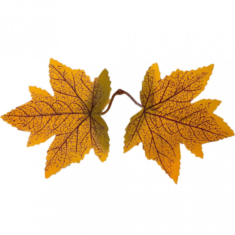 Этот декоративный лист клена выполнен в насыщенном жёлтом оттенке. Особенность листа — чётко прорисованные жилки, которые делают его максимально реалистичным и подчёркивают характерную форму клена. Лист имеет естественную текстуру и насыщенный жёлтый цвет, что придаёт ему яркость и тёплое настроение, идеально подходя для осенних флористических композиций и декора. В центре листа находится специальное отверстие — оно предназначено для удобного крепления листа на подбукетник или флористическую проволоку. Это обеспечивает надёжную фиксацию листа и облегчает работу при создании композиций.
